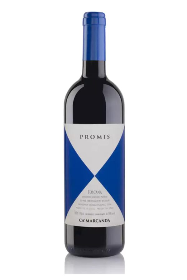 Promis Toscana IGT 2019 to włoskie, czerwone, wytrawne wino z regionu Toskania, stworzone przez renomowaną winnicę Gaja Ca’ Marcanda. To wyjątkowa kompozycja Merlot (55%), Syrah (35%) i Sangiovese (10%), która oddaje kwintesencję toskańskiego terroir. Charakteryzuje się piękną ceglaną barwą z refleksami granatu. W aromacie wyczuwalne są kwiaty (bez, fiołek), przyprawy, zioła oraz nuty mineralne. Na podniebieniu świeże, soczyste i owocowe, z kremową strukturą i subtelną taniną, z akcentami czarnej jeżyny, rozmarynu i kopru włoskiego.