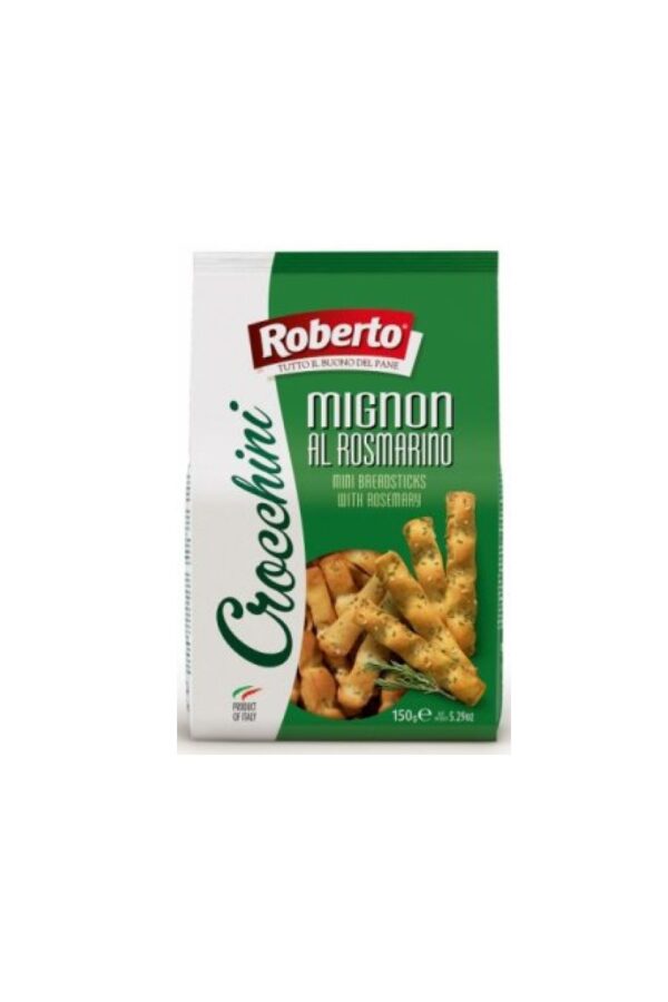 Włoskie, przepyszne, chrupkie i delikatne Crocchini Mignon zostały wytworzone wyłącznie z naturalnych składników według unikalnej receptury Roberto. To wyjątkowe paluszki z dodatkiem rozmarynu. Idealnie sprawdzają się jako przekąska do wina.